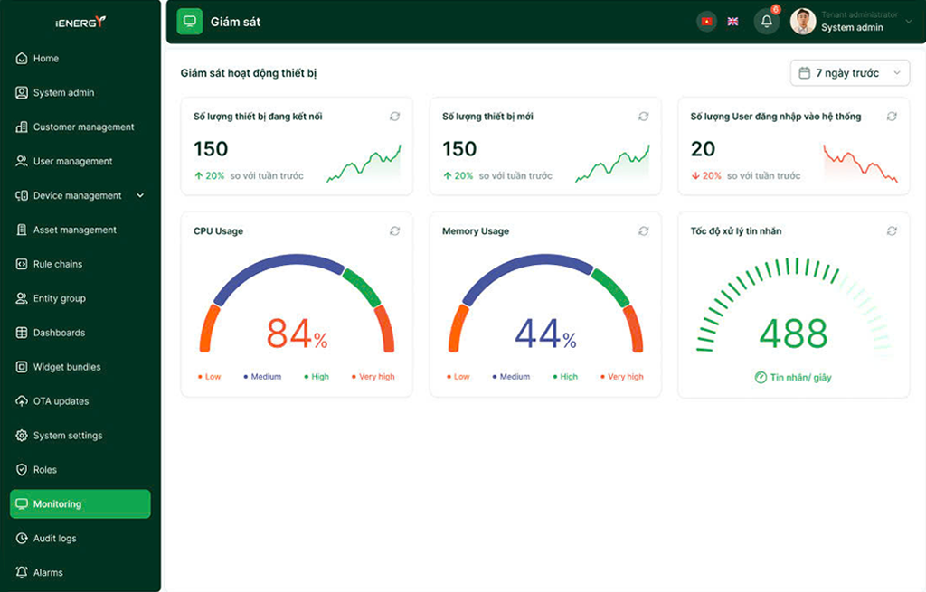 Giám sát dữ liệu tức thời, xem lịch sử và phân tích chi tiết.