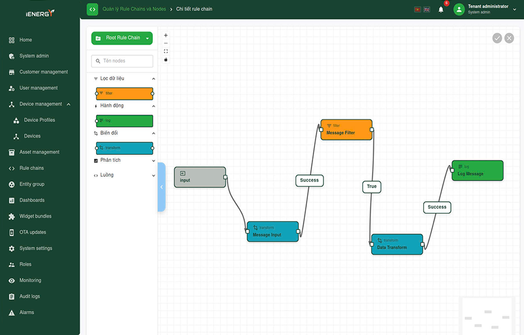 Cho phép xây dựng kịch bản xử lý thông minh bằng giao diện kéo thả, không cần viết mã. Hỗ trợ tự động hóa, kích hoạt cảnh báo và tích hợp hệ thống ngoài.
